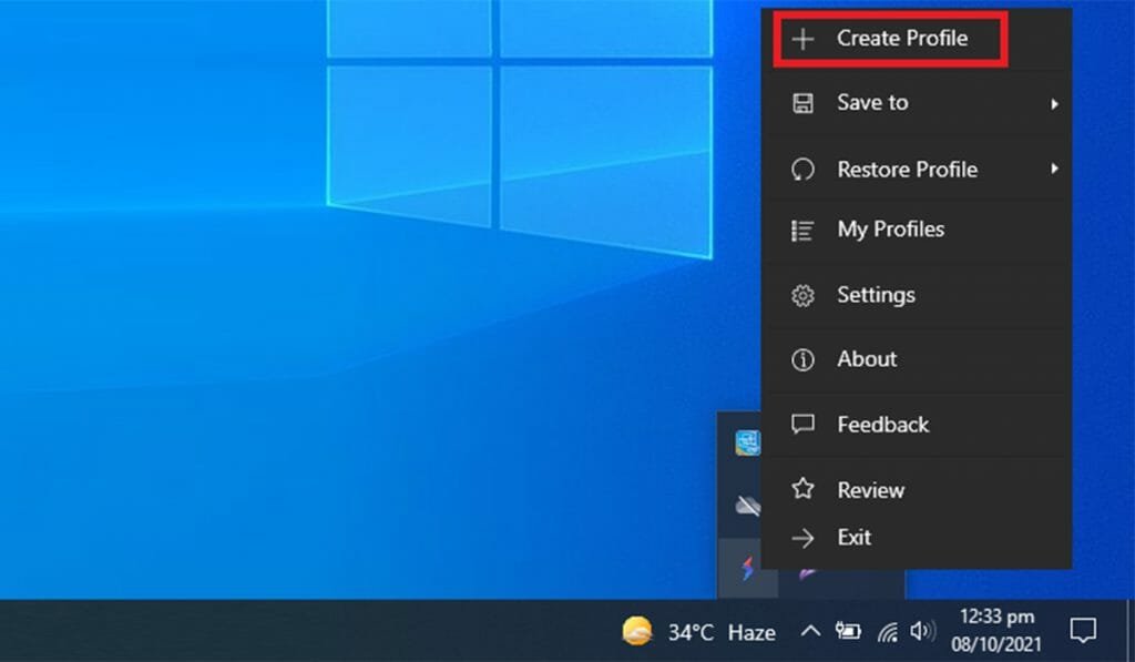 This is the first step you need to do in order to save your screen configurations. Click on “Create Profile”.